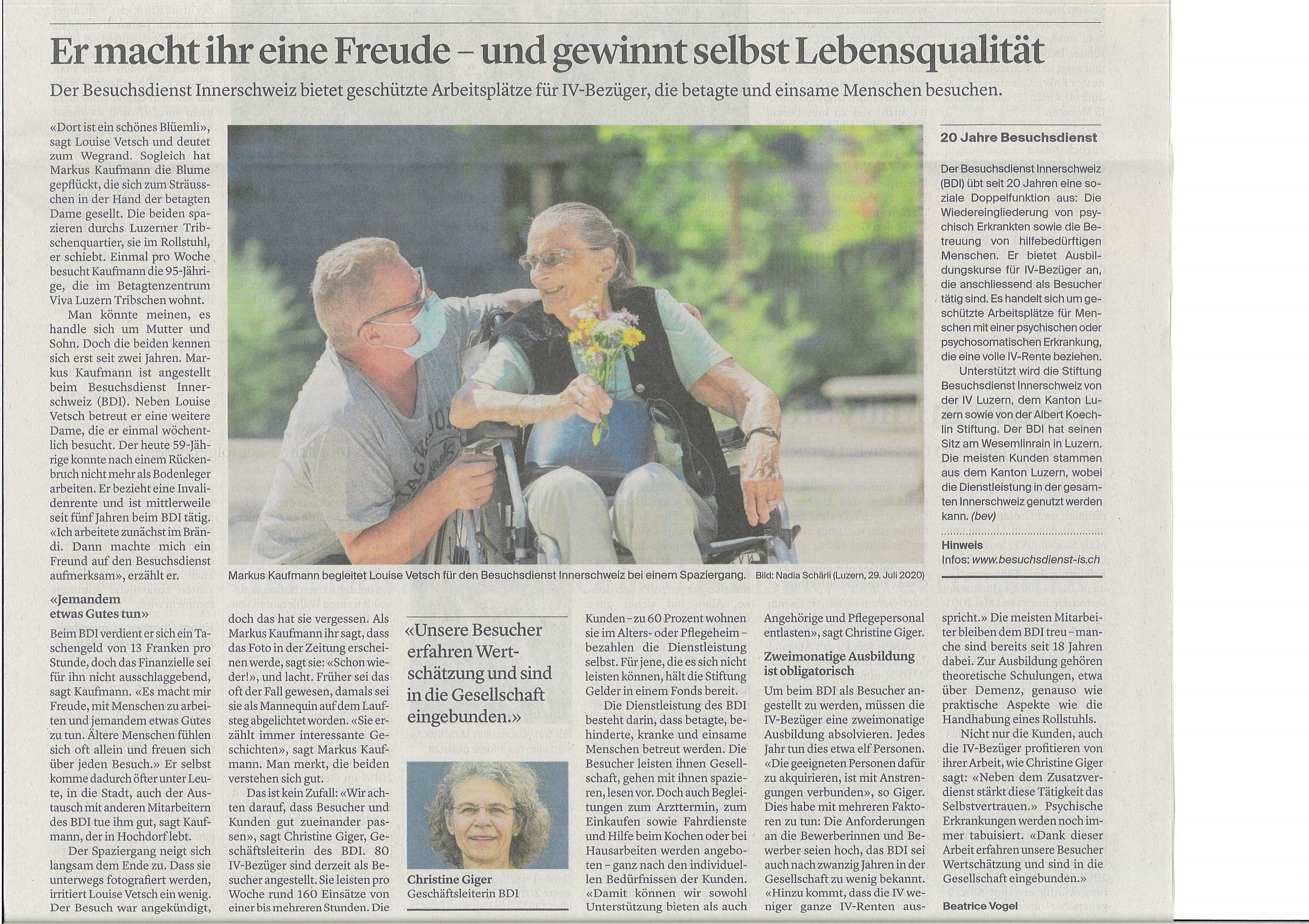 Bericht in der Luzerner Zeitung vom 4.8.2020